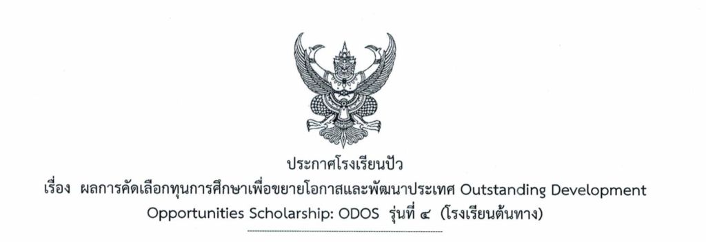 ✅ ประกาศผลการคัดเลือกทุนการศึกษาเพื่อขยายโอกาสและพัฒนาประเทศ Outstanding Development Opportunities Scholarship: ODOS รุ่นที่ 4 (โรงเรียนต้นทาง) 🎉