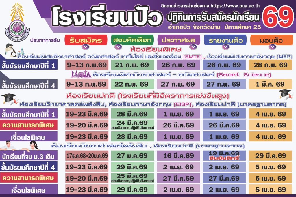รอบห้องเรียนพิเศษ และรอบทั่วไป ปีการศึกษา 2569