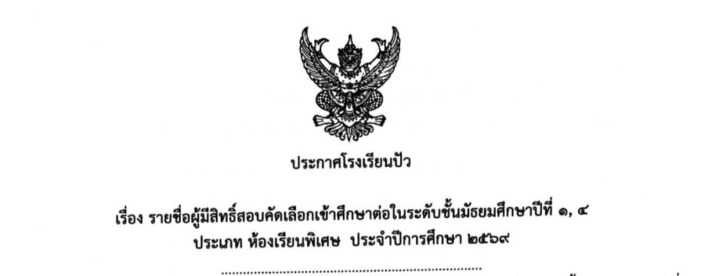 ประกาศโรงเรียนปัว เรื่อง รายชื่อผู้มีสิทธิ์สอบคัดเลือกเข้าศึกษาต่อในระดับชั้นมัธยมศึกษาปีที่ 1,4