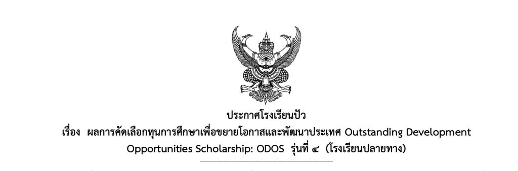 ✅ ประกาศผลการคัดเลือกทุนการศึกษาเพื่อขยายโอกาสและพัฒนาประเทศ Outstanding Development Opportunities Scholarship: ODOS รุ่นที่ 4 (โรงเรียนปลายทาง) 🎉